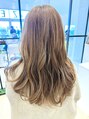 ロングのレイヤーカットにグレイヘアもぼかしながらの明るめカラーにすることで、立体感のあるヘアカラーに。グレージュでソフトで軽やかさを演出♪髪質改善縮毛矯正/髪質改善トリートメント/白髪ぼかしハイライト/ブリーチ[桶川]