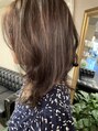 表面にはハイライトを入れずおろしているとシークレットハイライトのように、巻いて動きを出すと目立つように入れています。ベースは暗め6トーンです。