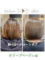 ショートボブ×ブリーチなしオリーブ3.4 髪質改善/縮毛矯正/ハイライト/ヘッドスパ/メンズ/白髪ぼかし/デザインカラー/パーマ/TOKIO/ブリーチ/学割U24/大阪/高槻/枚方