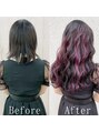 黒髪ベースに、パープルのメッシュを全体に入れました!巻くと立体的に綺麗に見えます★