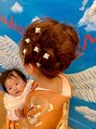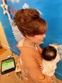 - くずしと毛流れを夜会巻きに取り入れました。お顔とのバランスで高さも調整しながらカールを面上に表現