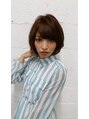 JILLEのヘアカタ撮影の一枚です。有名映画のイメージモデル モデル タレント和希 詩織さん。ダブルカラーのハイトーン エアリーショートスタイル。個性的でくせ毛風パーマをかけて簡単スタイリングヘア、セミウェット系もOK。