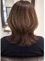 柔らかさと動きを両立したくびれミディスタイル。トップに自然なボリュームを出しながら、毛先は軽さを出して外ハネにすることで、抜け感のある大人シルエットに仕上げています。カラーはベージュブラウンをベースで光に当たると柔らかく透ける質感が魅力です