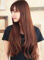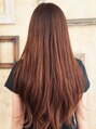 重めシルエットのローレイヤーロング。太めのロッドを使い揺れカールを。明るめのアプリコットアッシュで華やかを。
