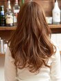 大きめなウェーブがとにかく素敵な大人可愛い人気のスタイル。 少しいつもより上からウェーブが効いているのでセットもラクで少し寝坊できそう! カラーは透明感とツヤ感があるルミエールジンジャーでパーマとの相性が抜 群です。