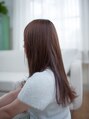 全体には重さを残したストレートスタイル。毛先に向かって軽さがでるようにアウトラインは前上がりにして表面にレイヤーをいれて自然なストレートに☆カラーは落ち着いたブラウンにヴァイオレットをプラスして深みとツヤ感を☆【大島】