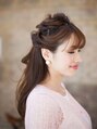 シースルーバングがかわいいレトロキュートなハーフアップ☆くるリンパをルーズにくずしてふんわりさせました。結婚式や2次会でもOK。女子会やデートにもおすすめです!カールを強めにつければ華やかさが増します☆【大島】
