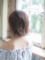 空間をあけるようにカットしたシンプルボブ。毛先中心にランダムにパーマをかけて無造作感を演出。外 国人風な透け感と柔らかさがでるように明るめアッシュカラーにしています。トレンドの赤リップも似合うおすすめスタイルです☆【大島】