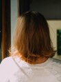 重ためミディアムスタイル。前髪を巻いたり、スタイリングで浮遊感を出すことで女の子らしさが倍増です★カラーはハイライトが入れてあって巻いた時に透け感が出るようにしています。グラデーションカラーにするのも良いです!!【大島】