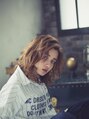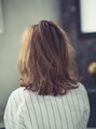 鎖骨ラインで扱いやすい長さのミディアムボブ。トップに段をつけて毛先に軽さをプラスしています。全体に毛先は無造作な動きがでるように隙間をあけながらカットしているので乾かすだけでも簡単にスタイリングができます!【大島】