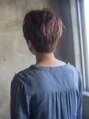 顔まわりにマッシュの丸さを残したシンプルショート。サイドや襟足はタイトにすっきりとカットすることでスタイリッシュな印象に☆眉上のショートバングは流して隙間をつくりアシンメトリー感をだしました。ポイントカラーをいれればオシャレ感UP☆【大島】