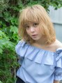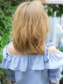 とってもフェミニンさが増すスタイル。毛先をふんわりとカールさせることで、ふわっとした印象に。思わず触りたくなるような、ハイトーンカラーでも柔らかなカラーが素敵です。前髪を眉上にすることでフェミニン効果を狙えます。[大島/大島駅]