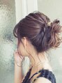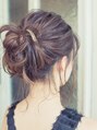 ツイストアップをラフに見せたない大人のアップスタイル。2段に分けてまとめているので、毛先にボリュームを出しやすく、さらにトップにはボリュームを出してバランスの取れたスタイルに。襟足、サイドに後れ毛を出し、大人っぽいスタイルに。[大島/大島駅]