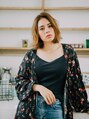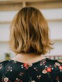 ミディアムロブの切りっぱなしスタイルで全体を軽くウエーブさせたナチュラルスタイルです。カールよりウエーブにする事で縦の動きが出るので重たく見えず、バランスのとれたスタイルになります。かきあげバングが大人らしいスタイルに☆[大島/大島駅]