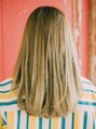 ハイトーンヌーディーカラーにハイライトで動きをだしています。毛先に向かって明るく変化していくグラデが肌の透明感を引き出します♪色っぽさもアップ!ストレートのヘアアレンジは、軽やかさが加わるような工夫をすれば、ピュアな雰囲気を演出できます。