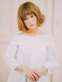 アゴラインでカットした切りっぱなしボブ。中間から毛先を中心にウェーブをつけて触りたくなる柔らかなゆるふわスタイルに!まゆラインの厚めバングで可愛らしさをプラスしています。キッリパなしボブを可愛く変化させたい方におすすめです![大島/大島駅]