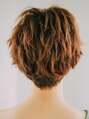 前髪は少し長めに。センターパートで分けたショートヘアー♪毛先のみ遊びを効かせたハネスタイルです!!毛先にかけてのグラデーションカラーを生かして束感と動きを出しました!!ワックスを使用で甘くならないショートヘアに!![大島/大島駅]