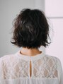 ミディアムボブにカールを散らしたスタイルです。ウエット系のジェルスタイリング剤で細く毛束を作り立体感のでるようにしています。襟足を外巻きにして丸いシルエットより四角いシルエットにしてカジュアルよりにしています。[大島/大島駅]