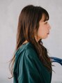 重たさを残したAラインシルエットのロングスタイル、落ち着いた雰囲気はトーンが暗いカラーリングで演出。シースルーバングで抜け感を出しましょう。Aラインのシルエットにゆるっとカールで女性らしいアンニュイな雰囲気漂う綺麗めロングスタイルです[大島]