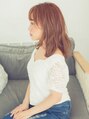 ふわっとさせた可愛いミデイアムヘアのスタイリングです!オレンジ色のカラーが明るい印象と女の子らしさを出していて、全体のスタイルもコテでゆるく巻かれていて柔らかい雰囲気のあるスタイリングになっています。[大島/大島駅]
