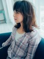 ヘアカラーは落ち着かせたブラウンをベースにしています。全体のイメージはアイラインで作り、スタイリングは、太めのコテを使って全体的に外ハネのスタイルにしています。外ハネに巻きすぎると子供っぽくなるので注意して下さい。[大島/大島駅]
