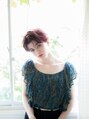 えりあし短め、前髪・トップ長めのハンサムショートスタイルです。カラーは根元外してブリーチして全体にレッド系カラーを入れています。赤系のカラーは抜けやすいので、定期的に重ねて入れることをおすすめします![大島/大島駅]