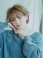 ハイトーンカラーで黄色みのあるベージュにする事で、明るさと大人っぽさの両方の雰囲気が出ます。バングをワンカール巻いてまっすぐ下ろす事でショートヘアーでも女の子らしさがしっかり出るスタイリングになっています。[大島/大島駅]