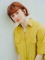 今年の夏は、アプリコットカラーがおすすめです!!重めの前髪に切りっぱなしのショートボブスタイルと明るめアプリコットカラーが相性バッチリ!少し個性的な印象にもなります。前髪を少し広めに作るのがポイントです![大島/大島駅]