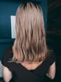 ハイトーンにしてぬけ感を出すことで大人っぽさを演出しました。顔周りのレイヤーを強めに巻いてあるのがポイントで動きがでるスタイルです。前髪は頬骨下で少なめに作り、センターでも分け目を変えても楽しめるようにしています。[大島/大島駅]