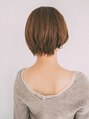人気のショートボブ!ショートから伸ばしているので、バランスの良いボリュームの位置を決めて、カットしてます!バングをしっかり作って肌出す事で重たいただのボブではなく、ヘルシーなスタイルに!カラーは透明感出して軽く見せてます![大島/大島駅]
