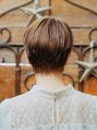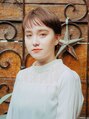 短くてもガーリーさを残したマッシュベリーショート。タイトめに収まりのいい襟足と、ウエイトを残したコロンとしたシルエットで丸み感を。カラーはココアブラウンで、明るさと温かみのある柔らかいカラー。透明感がでて可愛いです!