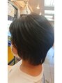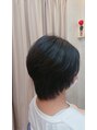 耳かけショートスタイル希望でしたが、生え際の髪が浮きやすいので 少し長めにカットをして、毛量調整でスッキリショート感を出しました。ヘアアイロンにて、やわらかさを出しました。