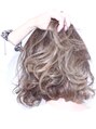 表面にしっかりと陰影がつくようにバレイヤージュを入れ、その後全体を彩度低めのグレージュカラーでオン。アッシュ系の色になりがちなハイトーンをベージュベースで日本人の肌にも合いやすい色味で仕上げました☆ウェーブ状に巻いたらグロスでスタイリング☆