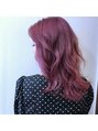 軽めのブリーチをしてから、退色を考えて少し濃いめのピンクに☆ミルクティー系カラー剤も混ぜているので、最初はピンクが強いですが、抜けてくるとピンク→ミルクティーピンク→ミルクティーと1度のヘアカラーで3回楽しめます☆