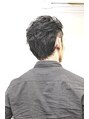 サイドを刈り上げてオールバック気味にスタイリングしています。サイドの刈り上げの幅はその人と髪質によってかなり変わってくるので相談してください。ジェルワックスで動きをつけつつスタイリング。