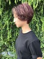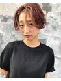 ワンブリーチしたヘアをレッドに。前髪のカラーを変えてワンポイントに。分け目を変えると雰囲気の変わるオシャレなショートスタイル。Instagram/nattu_o