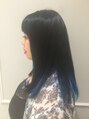 カットはシンプルにきりっぱなしカット人気のインナーカラーは内側をブルーにしてインパクトを抑えてあります