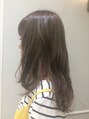細かく全体をブリーチでウィービングした後に、カーキアッシュをオンカラーしました。全体的に柔らかい雰囲気にするために顔周りが短いレイヤースタイルです。