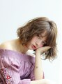 外国人風のニュアンスパーマ。細かいパーマで外国人の癖毛のようにくしゃっとするようにパーマをかけ、柔らかいベージュカラーでよりナチュラルな雰囲気に仕上げました。