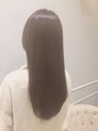 8トーンくらいの中明度のアッシュグレージュです。黄色味や赤味で退色してしまう髪の毛でも綺麗に色持ち保ってくれるようなカラーです