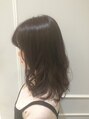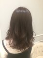 レイヤーの入ったミディアムスタイルです。コテ巻きでランダムな感じに動いてくれます。カラーはヴァイオレットグレージュで、柔らかいウォームアッシュ感のある髪質が綺麗に見えるカラーです。重たく見えなくて軽やかな雰囲気になります。