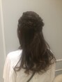 ハーフアップです。ゆるめの編み込みとゆる巻きで可愛い感じにしてあります。顔周りの後れ毛なども残すところを計算して出すとバランスがいいです。