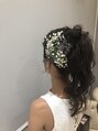 高さのあるポニーテールはカールをよりきれいにみせてくれます!シンプルですがサイドをデザインしてるので華やかさもでるスタイルです! ぜひご相談ください!