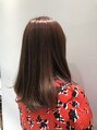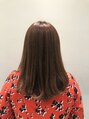 まとまりやすいローレイヤーミディアムスタイルです。ピンクベージュカラーで柔らかさとツヤ感が出るようにしてます。ほんのりピンクにすることで髪の毛に潤いが出て見えます。
