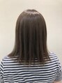 きりっぱなしのミディアムボブに、ブリーチでハイライトをたっぷりと入れたグレージュカラーです。柔らかく巻かなくてもおしゃれな仕上がりになります。