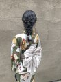 お任せで浴衣着付けとヘアアレンジをさせていただきましたー!黒髪でも可愛くなるように、ルーズ感を重視したモコモコ編みおろしアレンジに、オシャレな浴衣に合わせてクシャッとしたお花風の帯にさせていただいています!