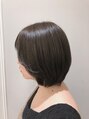 首が隠れるくらいのひし形ボブです。短すぎない長さなのでアレンジもできます。カラーはアッシュベージュカラーで透明感が出るようにしてあります。