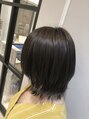 外はねレイヤーボブスタイルです。やわらかいアッシュカラーでトーンダウンすることにより重くないニュアンスカラーになります