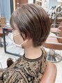 ベリーショートに1ブリーチで作るベージュ。くすみベージュでオレンジ味を消しています。ショートは巻いたりアレンジの幅が多くはないのでハイトーンでお洒落を楽しんでみてください!