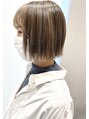 シンプルなボブにブリーチハイライトとローライトをミックスしてデザインカラーにしっかりコントラストを効かせたオシャレなスタイルです☆白髪のぼかし効果も!!